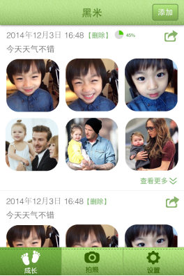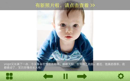 照片共享:用户在App端上传照片后,平板端自动同步显示,并根据照片上传时间自动分组。同时在不影响清晰度的情况下,对图片进行压缩,保证速度。